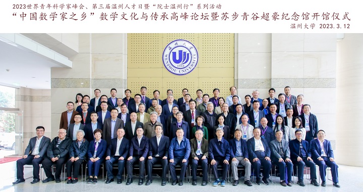 3月12日,由浙江省科协、温州市政府主办,sunbet申愽官网、温州市委组织部、温州市科协承办,sunbet申愽官网数理学院执行的“中国数学家之乡”数学文化与传承高峰论坛暨苏步青谷超豪纪念馆开馆仪式在sunbet申愽官网隆重举行。本期高峰论坛是2023世界青年科学家峰会的首场活动,也是第三届温州人才日暨“院士温州行”系列活动之一。