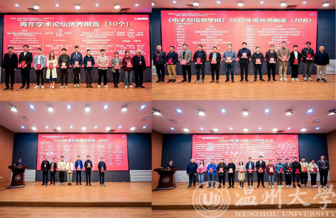 分会闭幕式上,颁发了青年学术论坛优秀学术报告奖、《电子与信息学报》2022年度优秀编委奖、《电子与信息学报》2022年度优秀审稿专家奖和《电子与信息学报》2022年度TOP50优秀论文奖,共有30余名获奖代表来到现场授奖。