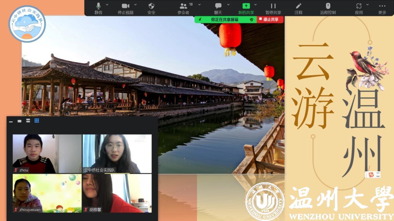 本次课程以《溯中国源,筑华夏梦——中华寻根之旅》为主题,分为“走进国旗”“中国历史传声筒”“祖国的发展与未来”三部分。在《云游温州》一课中,实践队成员围绕“观景点”“探美食”“知习俗”“晓人文”四大主题,通过一系列的风景图、美食照、传统节日剪影、温州精神阐释,带领海外侨童云端游历温润之州的美景美食、风俗人文,帮助孩子们更加立体全面地了解温州。