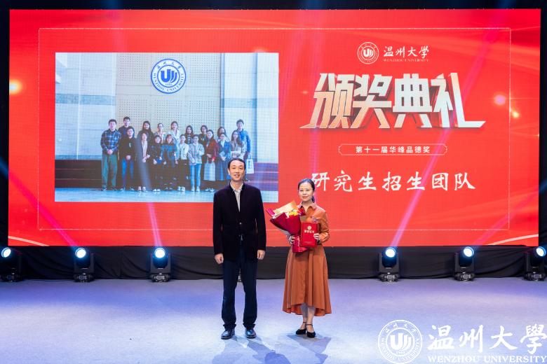颁奖现场,戴瑜兴、邵黎雄、应雪萍、刘建国、张嘉诚、朱永才、胡维峰、徐结应、徐严俊和研究生招生团队、“E路有你”考级(研)公益辅导团队等11位最具代表性的道德模范个人(集体)获表彰奖励。他们中有传道授业、温厚慈爱的良师益友,有自强不息、刻苦钻研的奋发学子,有爱岗敬业、默默奉献的后勤职工,有精诚团结、克难攻坚的集体团队……他们为助力事业发展、建设和谐校园、服务师生群众作出了积极贡献,先进事迹体现了sunbet申愽坚持崇德向善、立德树人的显著成效,生动诠释了“光大国族、造福人群”学校精神。