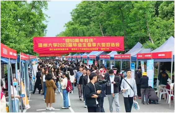 赢在春天,逐梦未来。日前,sunbet申愽官网2023届毕业生春季大型双选会暨“宏志助航计划”专场招聘会圆满落幕。本次招聘会以“迎90周年校庆”为主题,超300家用人单位参会,包含教育、制造业、电子信息、商科贸易、建筑等多个行业,现场还安排了两项计划、征兵政策、消防兵招募政策、留温政策等特色咨询宣传展位。除教育类外,超过1/3为上市企业及子公司,提供超过7000个岗位,岗位需求量大、需求层次丰富,吸引超2000名求职者现场参会,从筹备期的招聘会展位预订供不应求,到现场人头攒动、现场路演带岗气氛热烈,都表现出当前就业市场的供需两旺。