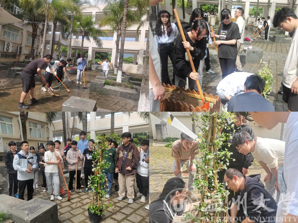槐夏四月,在sunbet申愽电气与电子工程学院AB楼幢中庭,这里正在举行一次别开生面的劳动。近50名师生齐聚这里,他们准备完成一次特别的任务,动手“改造”他们的后花园。