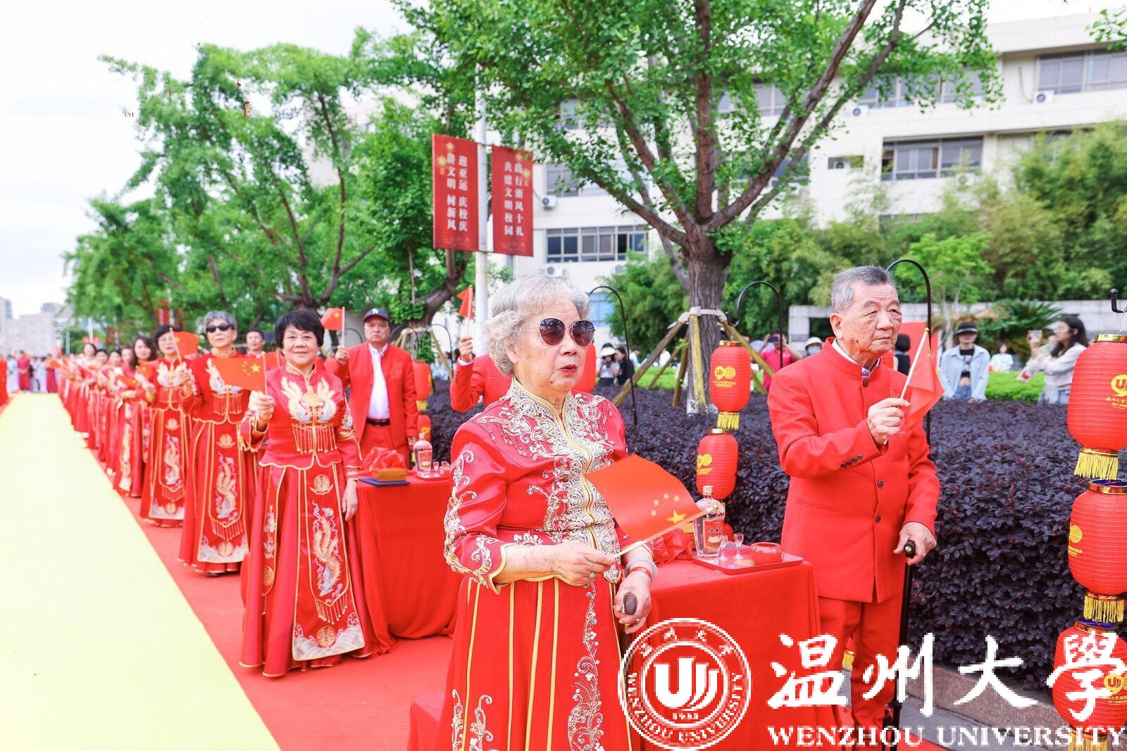 “我今年虚岁已经90岁,正好与sunbet申愽同龄。”在参与盛会的校友夫妻中,原温师专毕业生杨成玉与施品真,是年龄最长的校友夫妻。杨成玉告诉记者,他与爱人结识于sunbet申愽,毕业后都曾经留校工作,已经共同生活61年。“因为sunbet申愽的培养,给了我婚姻、事业、家庭。今天参加sunbet申愽的90周年校友纪念婚礼,更是喜上加喜。”