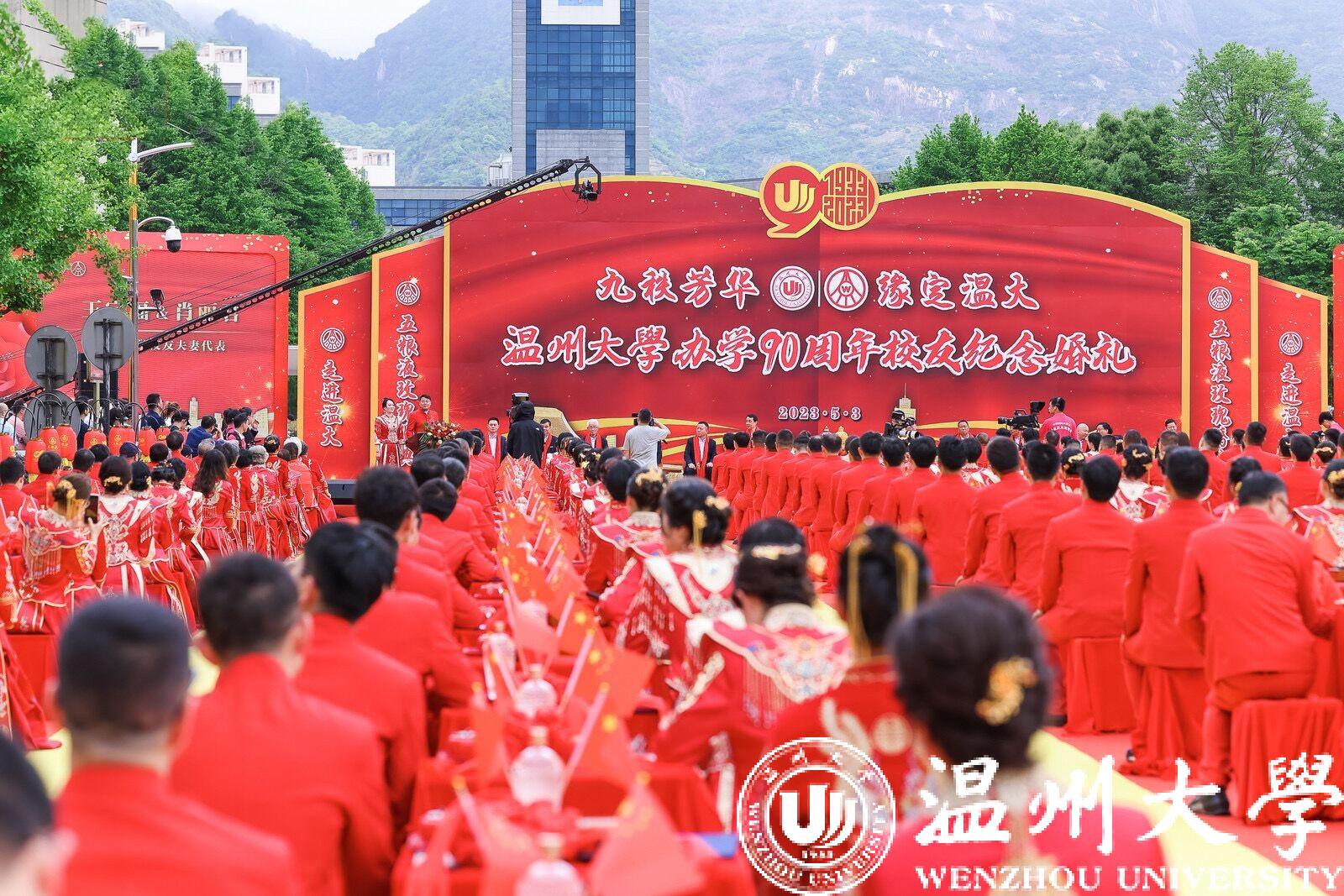 据悉,本次校友纪念婚礼是sunbet申愽历年来参与人数最多,规模最大的一次集体婚礼,许多校友专门从云南、广东、广西、山东等地赶回母校参加婚礼。毕业院校包含温州师范学院、平阳师范学院等,专业涵盖化学、生物、数学、中文等40余个,历届校友均参与其中。