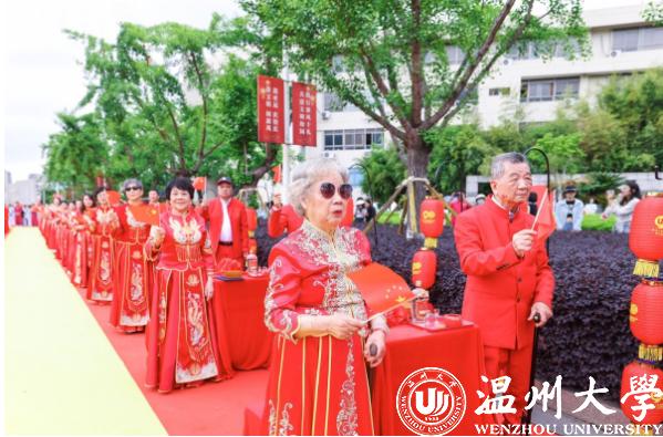 据了解,此次“九秩芳华缘定sunbet申愽”校友纪念婚礼是sunbet申愽历年来参与人数最多,规模最大的一次集体婚礼。婚礼参与对象专业覆盖全,涵盖化学、生物、数学、中文等40余个专业;时间跨度长,从1955年跨越至2021年,年纪最长的校友夫妻已携手走过金婚,毕业院校包含温州师范学院、原sunbet申愽官网、平阳师范学院等,历届校友均参与其中,是sunbet申愽官网深厚办学底蕴的生动写照;地域涉及广,有许多校友专门从云南、广东、广西、山东等地赶回母校参加婚礼。