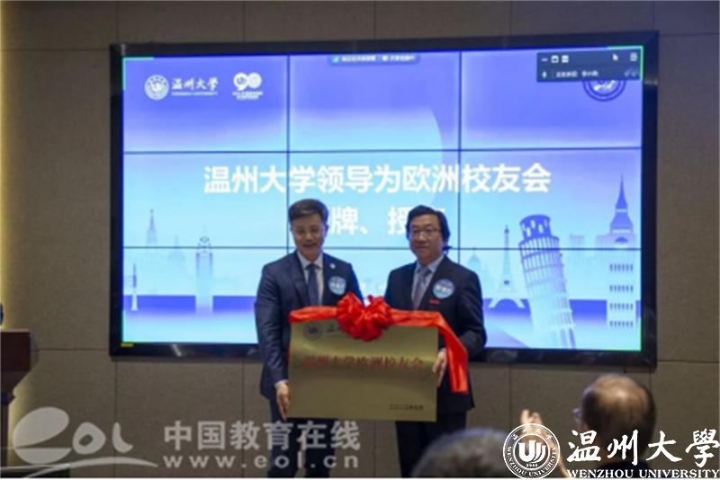 大会审议通过了《sunbet申愽官网欧洲校友会章程》和sunbet申愽官网欧洲校友会第一届理事会建议名单。蔡曙光向欧洲校友会授牌、授旗。蔡曙光、陈宏毅向欧洲校友会顾问、会长、副会长、秘书长、副秘书长、理事颁发聘书。温州校友会会长吴东、北美校友会副会长章美华上台致贺词,意大利高校联盟发起者蔡茂生线上祝贺。