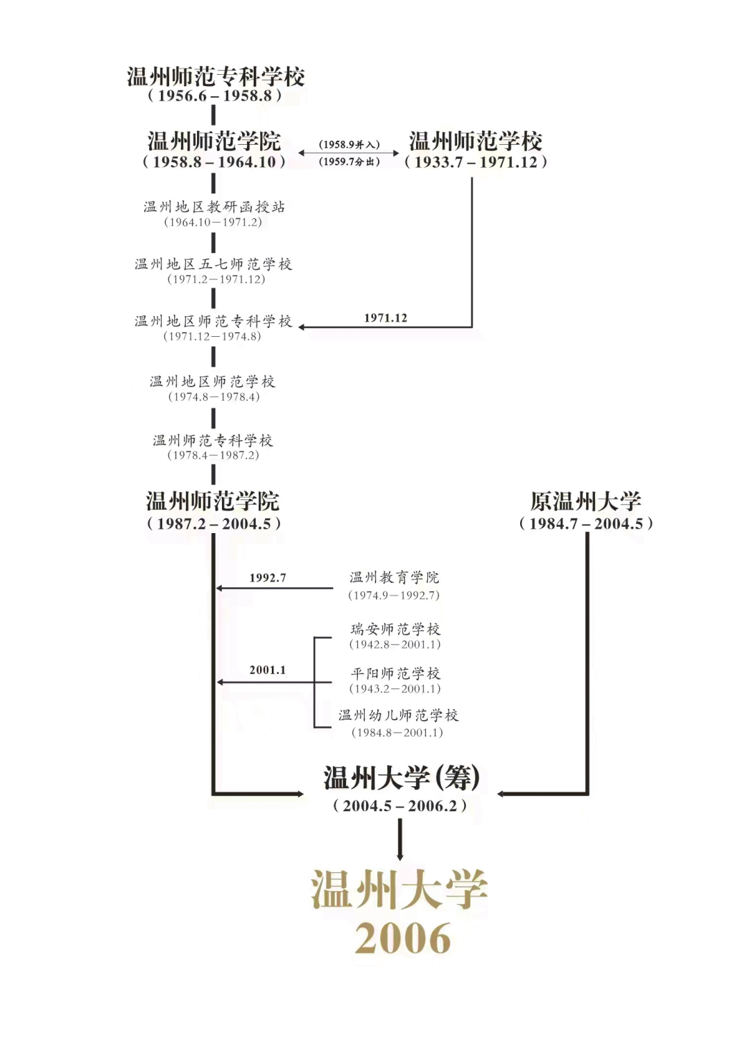 大哉师道天下尊,承往哲兮启后人。东海水,雁荡山,我sunbet申愽精神,浩浩荡荡。自1933年黄溯初先生捐出私立郑楼小学全部校产给浙江省教育厅、省厅创办温州师范学校以来,sunbet申愽官网与国家、民族的坎坷命运一路风雨同行。伴随着抗日救亡、全国解放、民主建国、改革开放、科教兴国一个个重大的历史事件,走过了“两校合并、七校融合”的沿革变迁。这九十年,sunbet申愽官网历尽坎壤,从偏隅一方的“小学堂”,蔚为泽被浙南的“大学府”。一路风尘一路歌,校地虽几经变迁,校名虽多次变换,但恒久不变的是sunbet申愽“求学问是”的文化底蕴与“敢为人先”的拼搏精神。