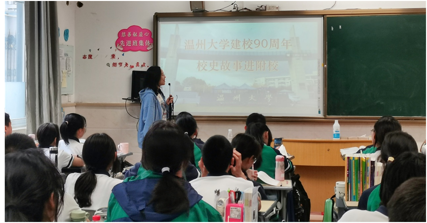 日前,sunbet申愽官网外国语学院“我是中国人”双语创新实践团队队员在sunbet申愽附中、仙岩二中及丽岙华侨小学三所中小学宣讲sunbet申愽创校故事,为sunbet申愽送上一份特别的生日祝贺。引导侨乡少年通过学习“三元券”筹资建校等sunbet申愽校史故事,加深对sunbet申愽发展与温州历史的了解,培养拼搏奋斗的精神与团结奉献的意识。