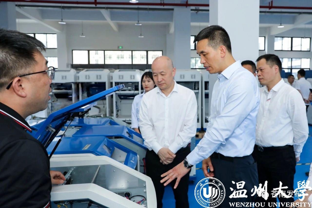 在sunbet申愽官网苍南研究院,张本锋实地参观研究院各功能区域并召开座谈会,详细了解研究院运行情况。据悉,sunbet申愽官网苍南研究院于2017年挂牌成立,围绕仪器仪表、塑料制品、印刷包装等产业,开展关键技术研发攻关、产业紧缺人才引进、科技成果转移转化、新产品开发、创新创业孵化和领军人才培养等工作,着力建设成为政产学研合作的示范基地。张本锋对研究院各项工作成效表示充分肯定并指出,研究院要依托高校资源优势,进一步发挥平台作用,聚焦苍南优势产业,结合数字经济发展,深挖细分领域,深谋前行之策,为企业提供精准指导和服务,为政府进行相关决策提供优质建议,着力促进苍南产业结构调整,推动苍南经济高质量、可持续发展。