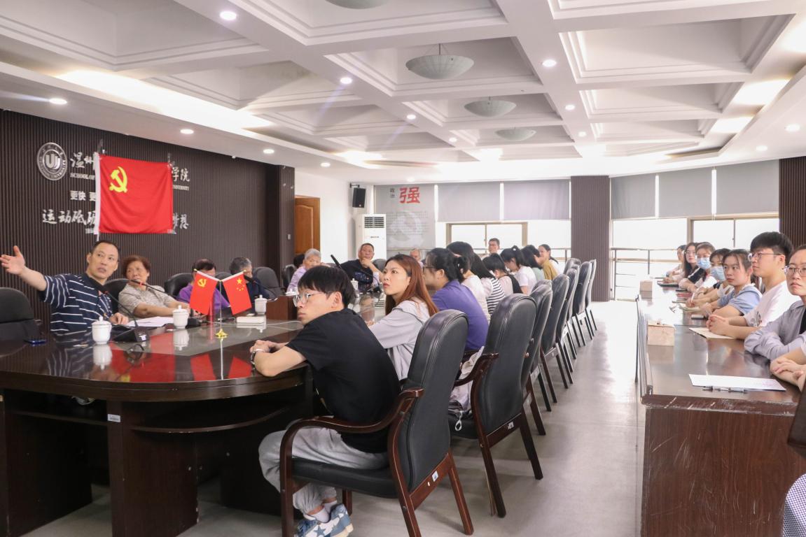 离退休党员代表结合自身经历与学生党员分享此次党课的学习心得。原温州师范学院党委书记金礼义同志和sunbet申愽官网原党委书记陈福生同志,分别结合自身工作经历,讲述了入党的初心以及始终用实际行动践行入党誓词的历程,重点强调誓词是对入党者的要求,要牢记誓词的核心,按照党章要求无条件地服从组织安排,在任何一个岗位上努力把本职工作做好,无愧于一个共产党员的称号。他们还表达了对研究生党员的殷切期盼,希望青年人发挥朝气、弘扬正气,为党的建设增添力量。