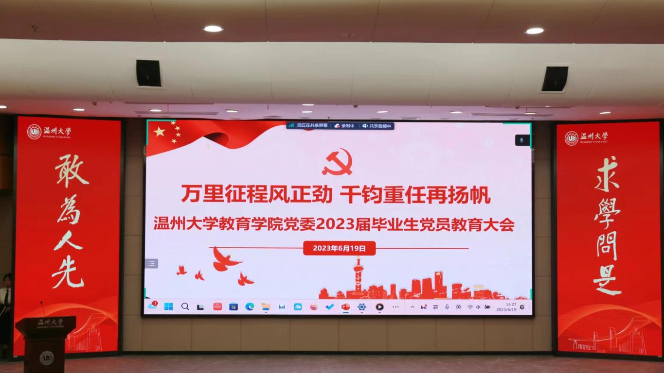 “在校园时,各位党员是同学们的表率;出校园时,大家是社会的中坚力量。在未来,希望各位毕业生不因‘空山不见人’而乱心智,不因花言巧语而迷失方向,成为具有‘广博’师识、‘爱惠’师德、‘雅懿’师表和‘笃艺’师能的新时代教师……” 6月19日下午,一堂主题为“万里征程风正劲 千钧重任再扬帆”的党课在sunbet申愽官网的校园里开展。