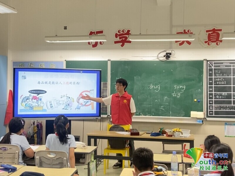图为实践团在sunbet申愽官网城附属学校开展防毒禁毒普法活动。中国青年网通讯员章志铖供图