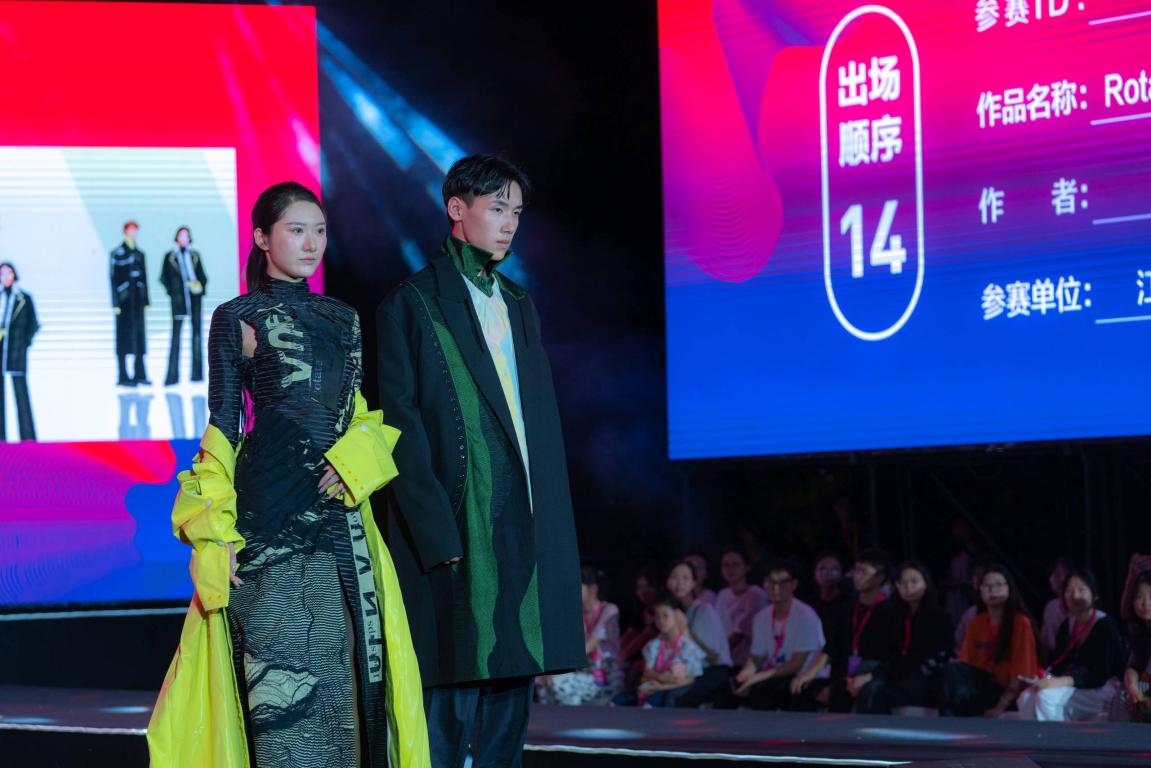 自作品征集以来,赛事组委会共收到1848件报名作品,最终共有28件优秀作品入围最终的决赛。今晚活动设置了国际时装、鞋类、配饰、综合演艺秀,邀请5位时尚设计领域专家组成主评审团,他们分别是中国纺织服装教育学会会长倪阳生,中国美术学院教授、博士生导师郑巨欣,四川大学教授、博士生导师杨璐铭,浙江理工大学教授、博士生导师朱伟明,DHD伦敦设计有限公司创意总监谢鎌光。主评审团对进入国际时尚设计专项赛决赛的作品进行评审,还亮出了现场打分的成绩,金、银、铜奖将在明天总决赛上颁奖。