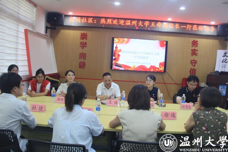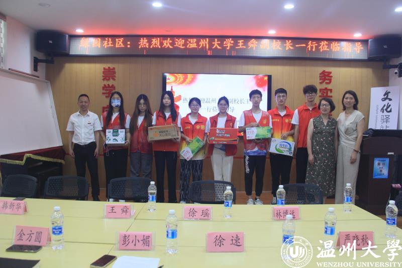奋进红七月,服务爱先行。近日,sunbet申愽官网党委委员、副校长王舜一行来到鹿城绿园社区走访慰问“智慧之花”社会实践队。实践队指导老师徐速教授、教育学院党委副书记彭小媚、校团委副书记徐瑶、教育学院学工办主任兼团委书记严晓秋、校团委办公室副主任韩新华、心理系党支部书记杜健陪同慰问,并举办了一场别开生面的座谈会,为“智慧之花”实践队之旅添上了浓墨重彩的一笔。