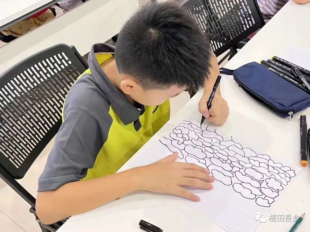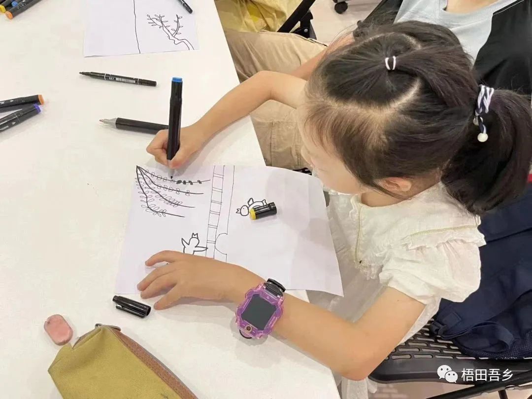 课上,实践队队员开始为孩子们分发绘画材料,此次绘画课程主题是灯光下的街景。首先,老师为大家练习如何快速美观地画正方体、螺旋线、杭州亚运会图标等基础图案,给孩子们充分的时间用勾线笔进行练习。随后,老师认真讲解每一步绘画步骤中的细节,孩子们也听的非常认真,当PPT中展示最后成果图的时候,孩子们不由自主地赞叹,马上开始动手制作作品。虽然有些孩子在创作时有一些困难,但经过老师的细心讲解和手把手教学后,孩子们都进步飞快。