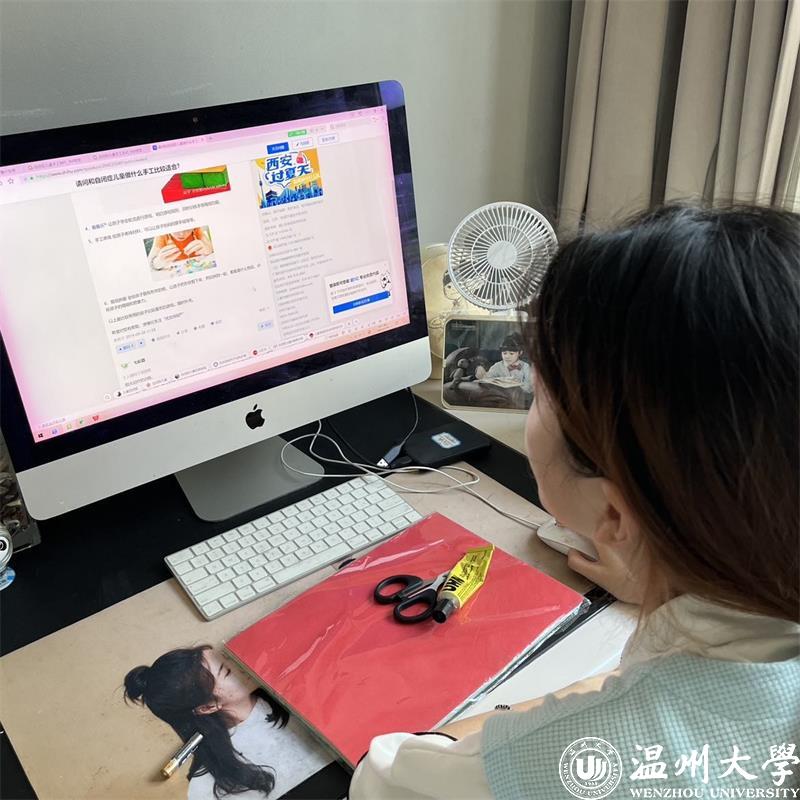 另一边,教具组的成员们带领星宝们分别制作了小青蛙、找找表情、会飞的小瓢虫、夏日冰淇淋这四种有趣的手工教具。这一手工课不仅能够增强星宝们对事物的认知与动手能力,从而更好建立起与周围人的联系,也承载着成员们通过简单的材料来提升星宝们对世界的兴趣的愿望。“我们希望用手工教具的力量,打开星宝们的心扉,为星宝们的成长点亮一盏充满梦想的明灯!”一位实践团成员动情地说。