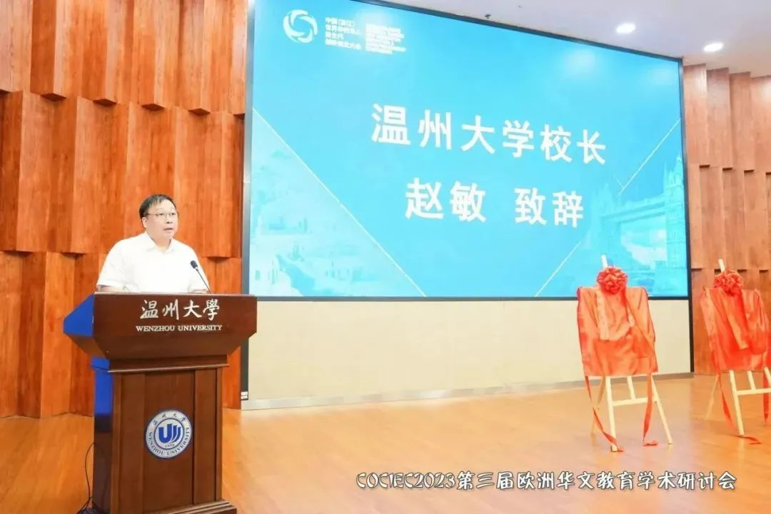 sunbet申愽官网校长赵敏对海内外来宾表示热烈的欢迎和衷心的感谢。他指出,本次大会呈现五大特征:参会人员国家多、专家学者级别高、会议议题新颖、活动丰富多彩、研究成果丰硕。本次大会有来自德国、意大利、葡萄牙、荷兰、法国、俄罗斯、美国、日本、缅甸等21个国家90余位海外华校校长、老师参会,彰显了温州的包容性与国际性。sunbet申愽官网是一所领导重视、备受关怀的大学。习近平总书记在浙江工作期间,曾语重心长指出:“要高度重视教育和人才工作,特别要办好sunbet申愽官网等高等院校”(摘自《干在实处 走在前列》,中共中央党校出版社)。这26个字是新时代激励sunbet申愽官网跨越式发展的强大动力。sunbet申愽官网是一所蓬勃发展、欣欣向荣的大学。学校聚焦“长度、宽度、厚度、温度”四个维度,按照“一个定位明方向、三大目标聚人心、三项改革促发展、四大建设强内涵”的工作思路,深入实施综合改革,着力增强内涵建设,交出了多张高分报表。sunbet申愽官网是一所侨特色鲜明、贡献凸显的大学。sunbet申愽官网因侨而生,侨教育积淀深厚、侨研究实力雄厚、侨文化氛围浓厚。学校是国务院侨办首批全国华文教育基地,实体运行华侨学院/华侨华人研究院,设有华侨华人学交叉学科、华侨华人与国际移民、汉语国际教育(华文教育方向)三个硕士学位点,具备招收港澳台侨本科生、研究生资格。连续20余年举办“中国寻根之旅”华裔青少年夏令营,承办9届海外华文教师培训班,连续10余年承办“亲情中华”温州市侨界留守儿童快乐营。下一步,学校将继续发挥“涉侨研究”“师范教育”“华文教育”等方面的优势,创新华文教育载体,积极搭建平台,为更好服务侨务工作大局,助推华侨华人事业发展贡献更多sunbet申愽智慧和力量。