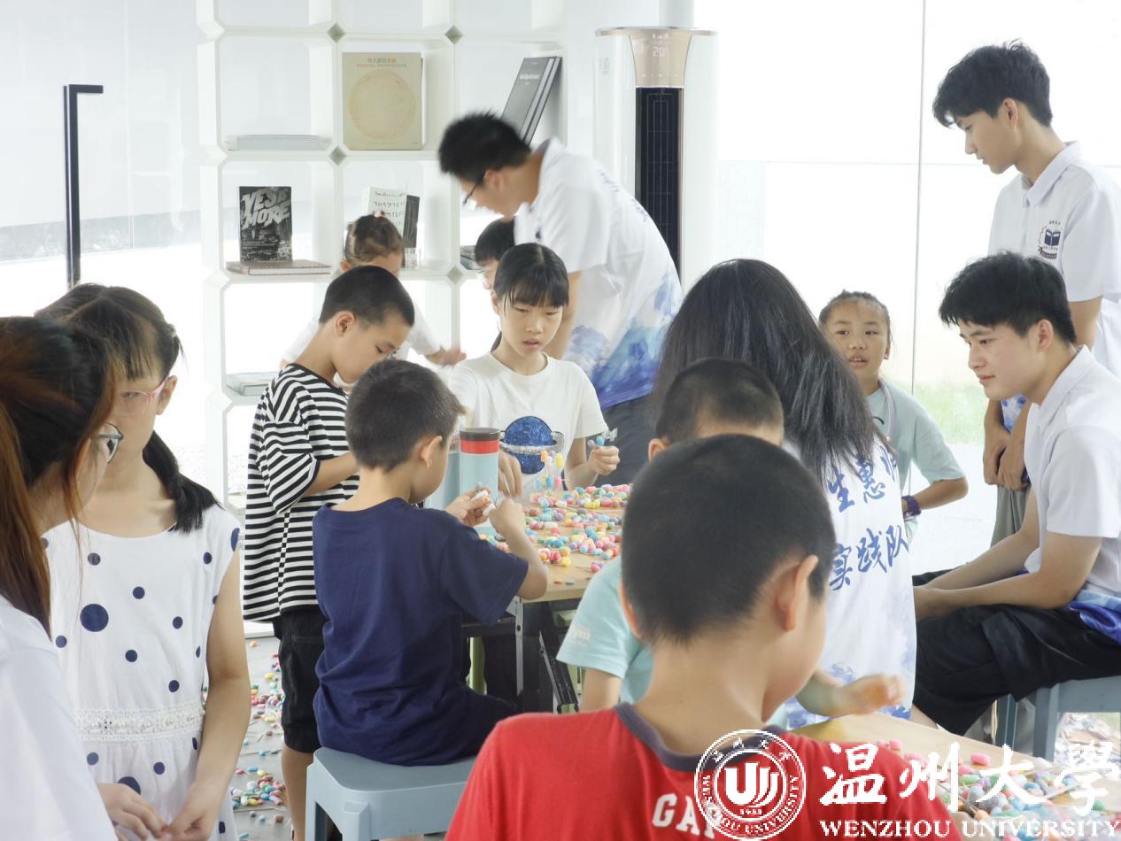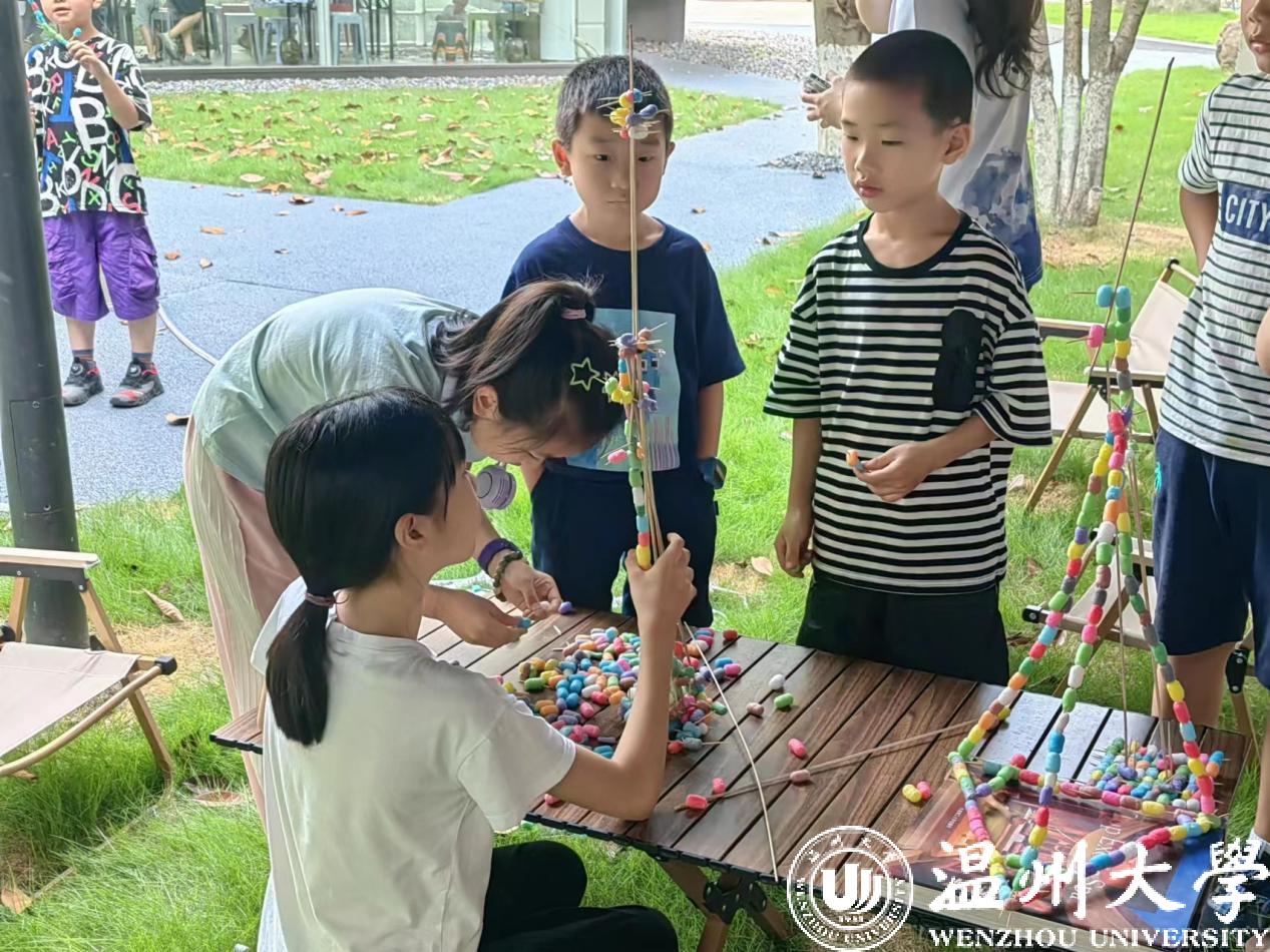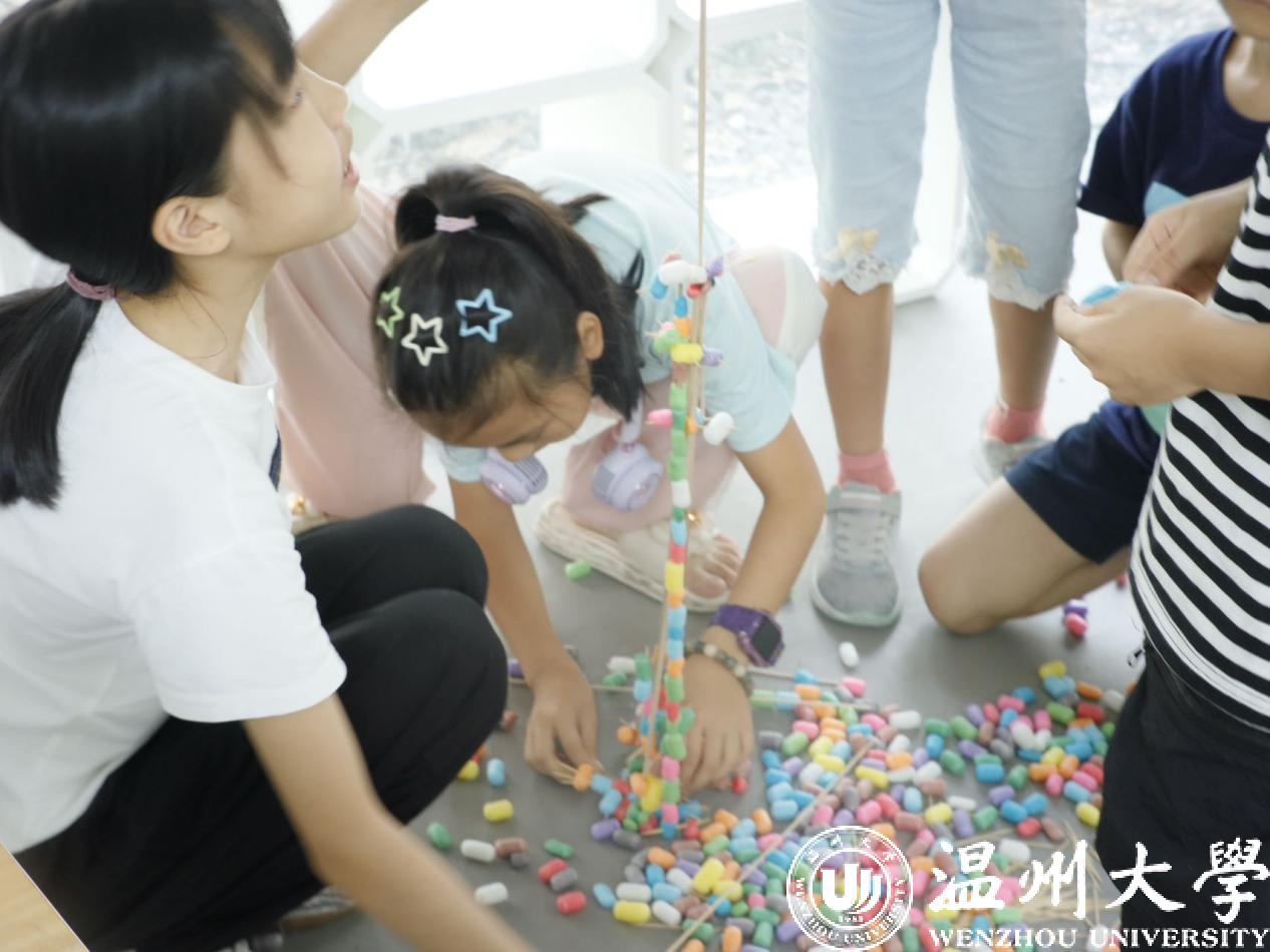 在sunbet申愽官网榕亭书屋,sunbet申愽官网暑期实践队和小朋友们一起开展了一堂“sunbet申愽第一高楼”建设大比拼。活动利用牙签、木棍与彩色泡沫球搭接,进行“建设大比拼”,对比各组的搭建高度。