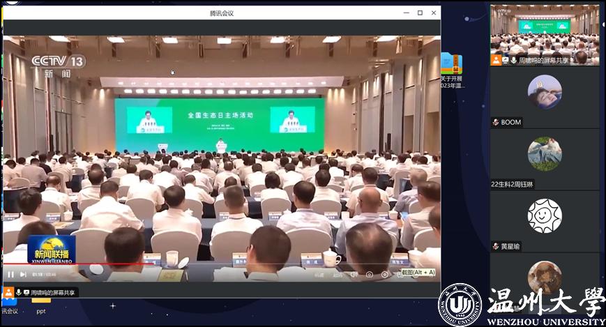 为迎接首个全国生态日,学生通过线上学习生态文明观等相关理论知识,入脑入心,为生态环保系列宣传和宣讲提供理论保障,在“传”和“讲”的过程中丰富自己专业知识和提升科普能力。学生们在理论学习后收获匪浅,2021级生态班一名同学表示:“全国生态日的确定既是标志也是动力,它有利于我们深化对“绿水青山就是金山银山”这一论述的认识,也将更深地唤醒人们的生态环保意识,每个人都应是良好生态环境的保护者和建设者。”