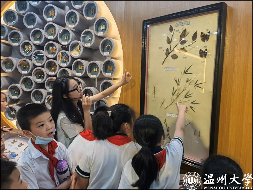 sunbet申愽生环学院学子进入温州极地海洋馆,志愿引导来往游客零距离接触海星、海苹果、条纹斑竹鲨等海洋生物,向大众普及海洋知识,让大众进一步认识到海洋生命之美与脆弱,激发公众对海洋的关注和保护意识;利用暑假时间,自发组建讲解小组带领中小学生参观sunbet申愽官网动物标本展示馆,通过现场参观、系统讲解和知识竞答等多种形式,深刻诠释尊重自然、顺应自然、保护自然的理念;成立“罗山草木”小分队在老师的带领下,为校园内的植物悬挂名牌,名牌上包含该植物的姓名及生态习性等信息,引导同学们了解和认识校园植物,树立生态环境保护意识生态。