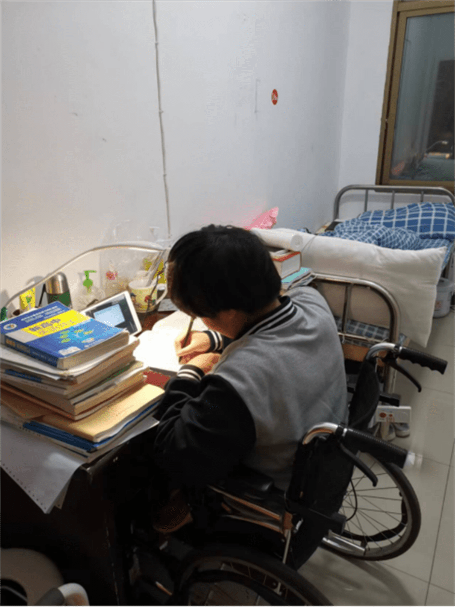 她说,从小学开始,父母就坚持陪读,每天都不惧风雨接送她上下学,这一点让她明白她与别人没什么不同。也正因如此,她从没想过自暴自弃,就此沉沦,而是一直勉励自己,督促自己努力学习,一边康复一边学习也成为了她的常态,甚至有时身体不适,她也坚持一边住院一边学习。