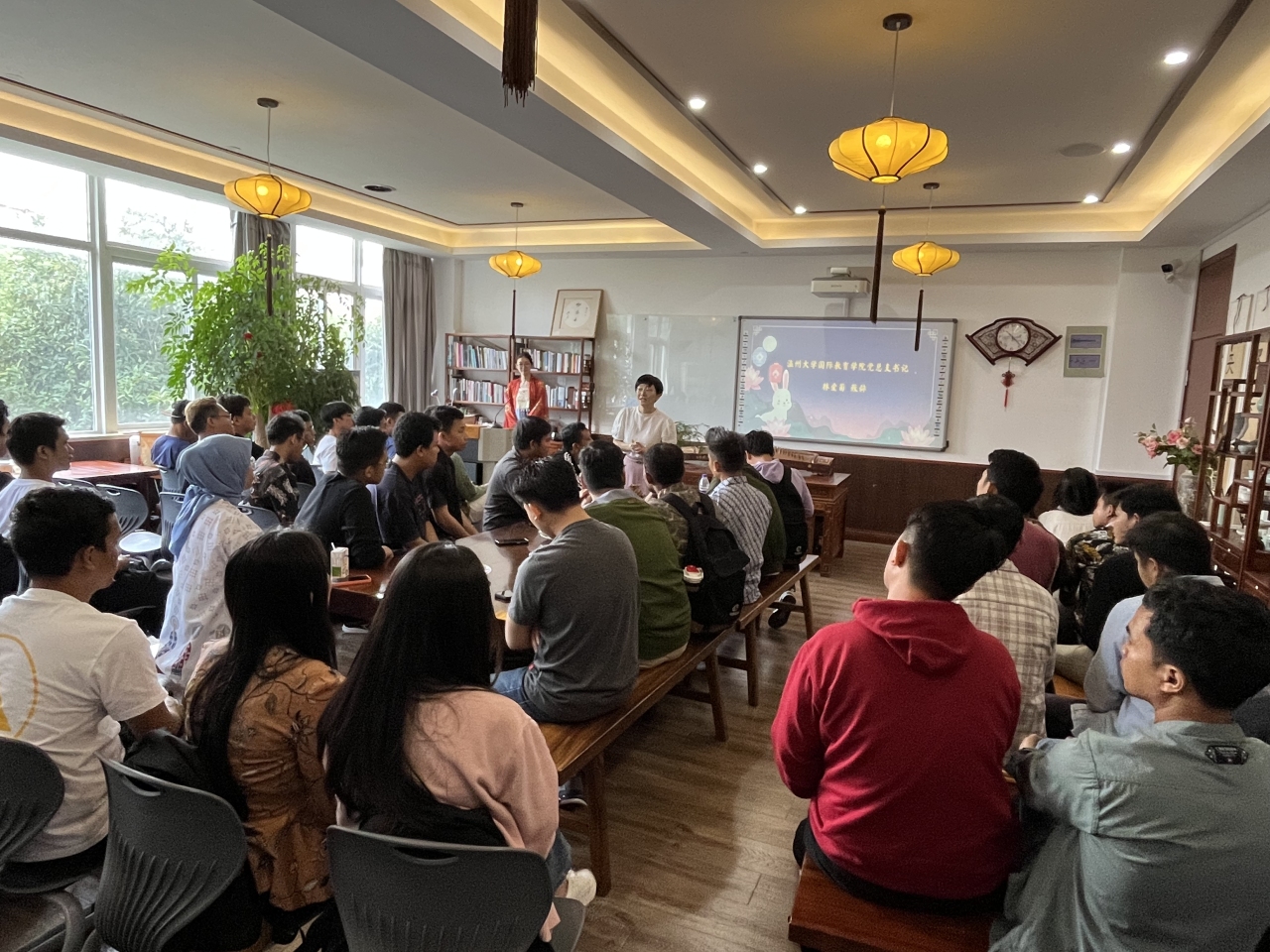 花好月圆庆团圆,中秋情浓意更浓。9月27日,sunbet申愽官网国际教育学院举行中秋文化体验活动,来自印度尼西亚的48名sunbet申愽青山班学员与sunbet申愽官网学生代表欢聚一堂,共迎佳节。