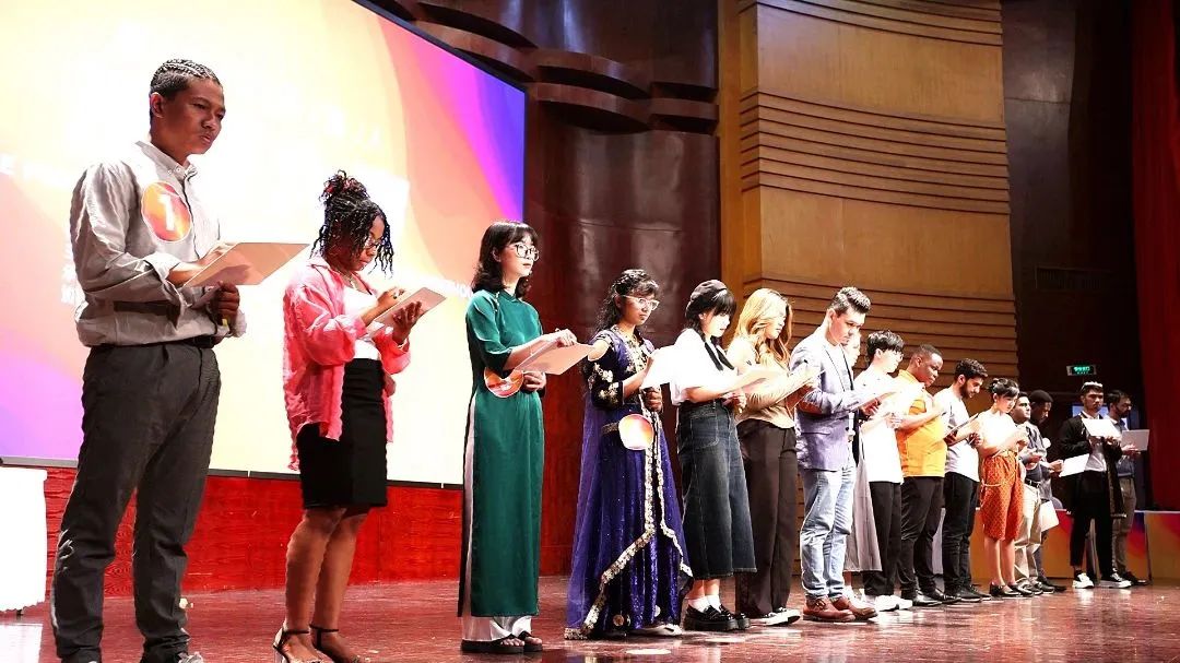 在决赛现场,来自加纳的主持人Precy(阿达)带来两首中英文歌曲暖场,为现场观众献上了音乐盛宴。随后,参与的16位选手,迈入比赛第一环节——自我介绍+即兴评述。选手们以“温州美食”、“温州美景”、“温州亚运”和“我与温州”四个主题展开即兴发言,以独特的视角和真挚的情感,分享了与温州有关的珍贵故事。每一位选手都用流利的汉语和生动的表达,让现场的中外观众近距离感受到了温州的魅力。