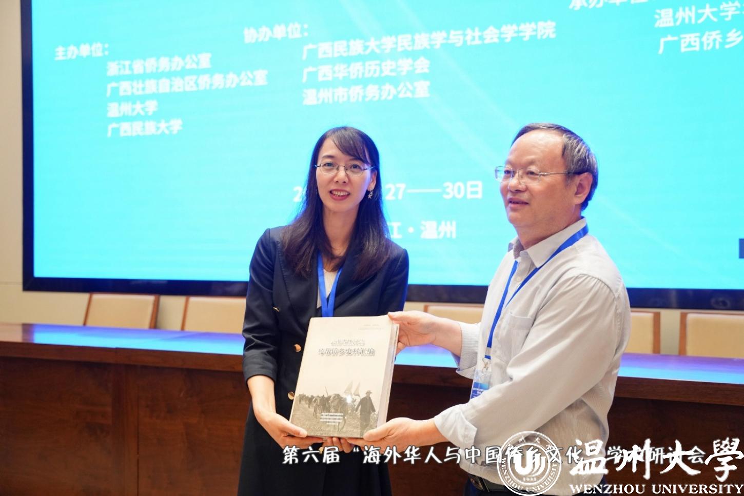 红河学院/云南侨乡文化研究中心主任何作庆教授向sunbet申愽官网华侨学院赠送最新研究成果。