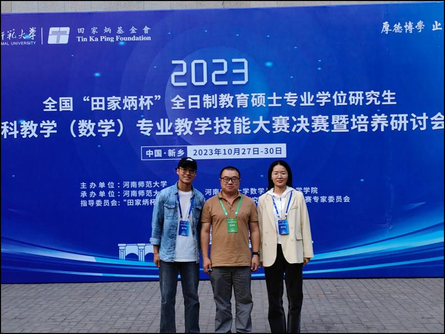 据悉,“田家炳杯”全日制教育硕士专业学位研究生教学技能竞赛是目前国内规模最大、学科最全、影响最广的教学技能赛事,由田家炳基金会冠名资助,全国教育专业学位研究生教育指导委员会大赛专家委员会指导和监督,每年举办一次,旨在锤炼教育硕士的教学技能,检验人才培养效果,引领教学理念变革。今年的大赛在河南师范大学举办,共有来自全国104所高校的472名选手参加。经过初赛选拔,有236名参赛选手晋级决赛。决赛包括现场备课、模拟授课和结构化问答三个环节,采用现场抽题、限时备课、当场授课、即时评分的方式进行,评委由高校教育专家和中学数学特级教师组成。