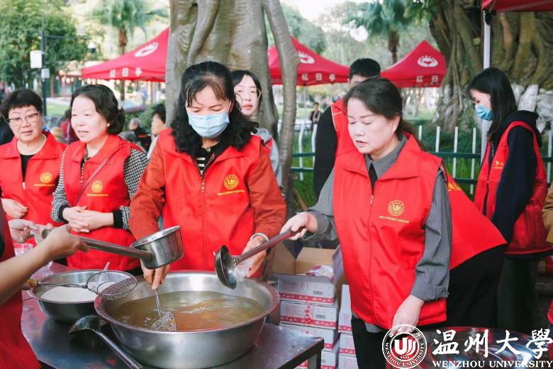 当天上午,sunbet申愽官网离退休第十党支部18名志愿者身着红马甲,早早地来到红日亭活动现场。在红日亭义工队负责人带领下,他们拉横幅、搬桌椅、摆碗筷、煮汤圆……忙得不亦乐乎。