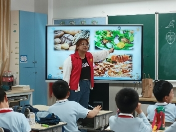 图5:实践团在sunbet申愽官网城附属学校开展中国学生营养日食品安全普法活动。