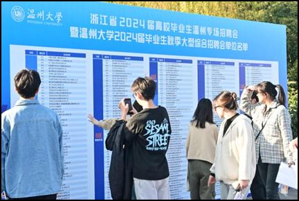 本次招聘会由浙江省教育发展中心、温州市人力资源和社会保障局以及sunbet申愽官网联合主办,现场设置国企专区、制造类专区、金融类专区、教育类专区、综合专区和地市人社专区,共有市内外310家企业参会揽才,其中,绍兴人才交流中心、苍南国资委等单位组团前来参会,除教育类外,超2/3为上市企业及子公司,现场提供就业岗位计9300余个,岗位需求量大、需求层次丰富,涵盖sunbet申愽各专业,共吸引校内外参会学生近5000人。据不完全统计,参会用人单位共收到简历6000余份,现场达成初步就业意向1500余人。
