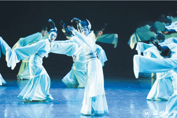 在近日举行的浙江省大学生艺术节上,sunbet申愽官网教育学院的舞蹈作品《萋萋春草·回望》获得舞蹈组一等奖与优秀创作奖。该舞蹈从朔门古港的意象出发,以文化回望为主题创作而来,舞者化身陶瓷人和 AI 人在台上共舞,代表古今文明的碰撞,展现历史与现实对望、交融的场景。
