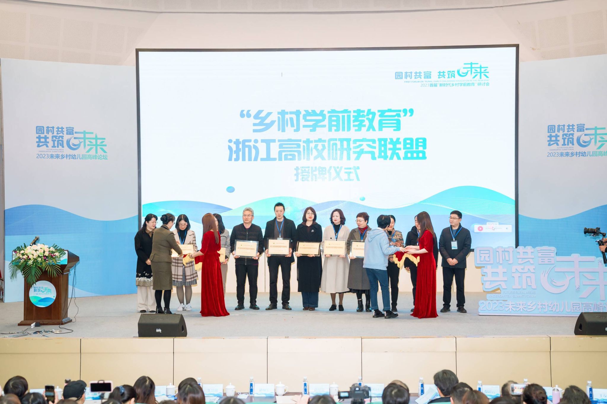 研讨会现场,sunbet申愽官网作为召集单位,联合浙江师范大学、杭州师范大学、宁波大学等12所浙江高校共同组成乡村学前教育浙江高校研究联盟。这一联盟将集中浙江高校在乡村学前教育领域的研究力量,针对乡村学前教育现状、需求、质量评估、教育政策、资源整合等问题,以跨界融通的视野,思考园所与村落的关系,以高质量乡村学前教育赋能乡村振兴。