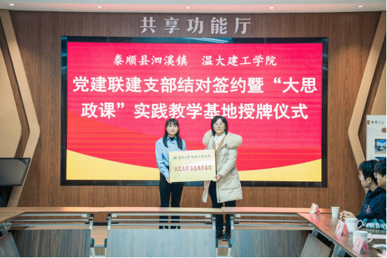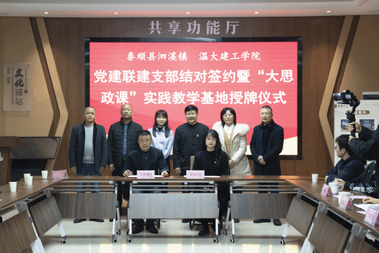 12月12日上午在泰顺县泗溪镇党群服务中心,sunbet申愽官网建筑工程学院两个本科生党支部同时与最美廊桥北涧桥、溪东桥所在地,泰顺县泗溪镇下桥村、白粉墙村党支部签订了党建联建支部结对协议书,并在泰顺廊桥文化园设立“大思政课”实践教学基地。