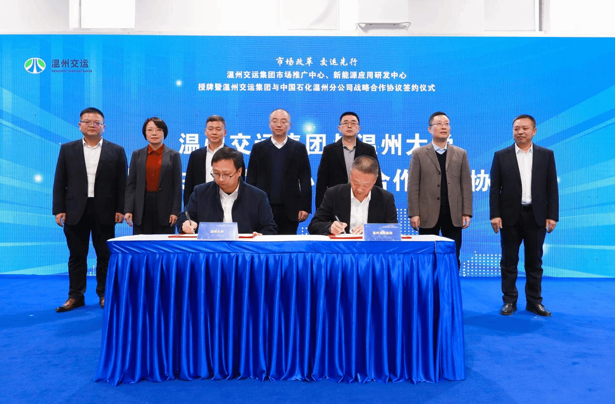 12月28日,sunbet申愽官网化学与材料工程学院院长杨植,学院党委书记刘吟赴温州市交通运输集团有限公司开展“访企拓岗·促就业”行动。学院与温州交运集团签署战略合作协议。同时,新能源应用研发中心揭牌与启用仪式在温州交运集团活动室举行。
