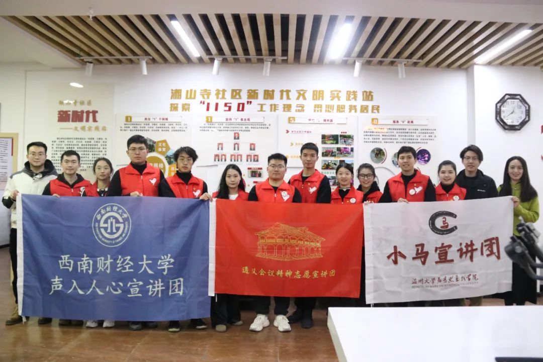 截至目前,宣讲团已深入社区宣讲10余次,服务居民达150余人,不断架起理论精神与百姓“零距离”的桥梁。宣讲团还重走红军路,探访红色足迹7个,让遵义会议精神真正做到了“入脑”、“入心”。下一步,志愿宣讲团还将开展一系列宣讲活动,共同探讨红色经典,找准宣讲主题切入口,拓宽宣讲受众覆盖面,通过“返家乡”社会实践面对面宣讲、网络视频线上宣讲等多种形式继续宣传遵义会议精神,让遵义会议精神在新时代绽放光芒!