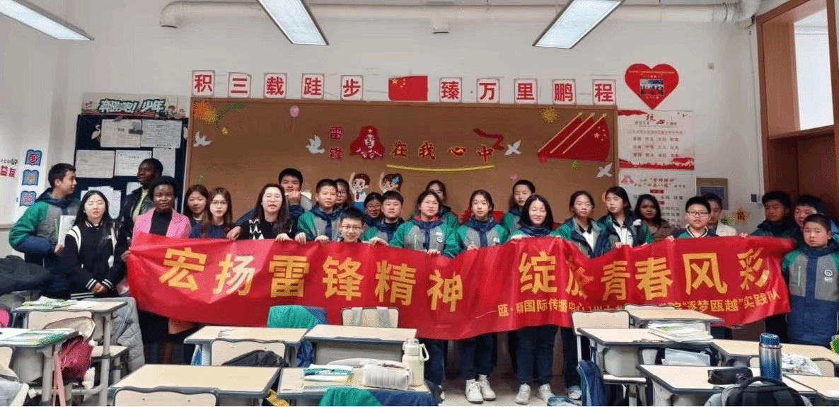 瓯·嗨国际传播中心联合“逐梦瓯越”超级讲师训练营来到了sunbet申愽官网附属茶山实验中学。瓯·嗨国际传播中心组织外国留学生与超级讲师训练营的英语师范生们一起开展课堂活动,读一读雷锋日记,讲一讲雷锋故事,谈一谈学习感受。