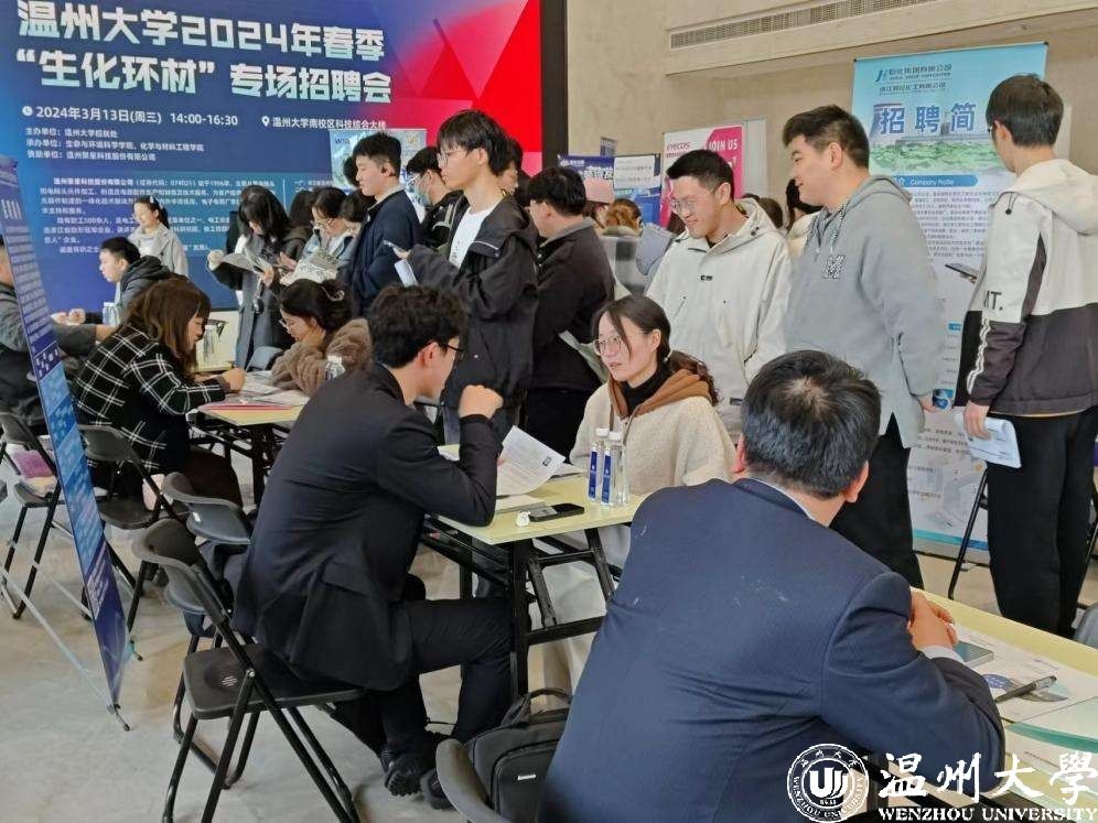 “今天的招聘会我们面谈了十几位专业对口的学生,效果还不错。我们跟学校老师约好下个周六再邀请30位相关专业的学生来我们企业现场参观,希望能用企业的文化、环境吸引更多优秀毕业生加盟。”来自温州本土的新三板上市企业温州聚星科技有限公司的招聘负责人李经理在sunbet申愽官网周三“就业直通车”——“生化环材”专场招聘会上如是说。