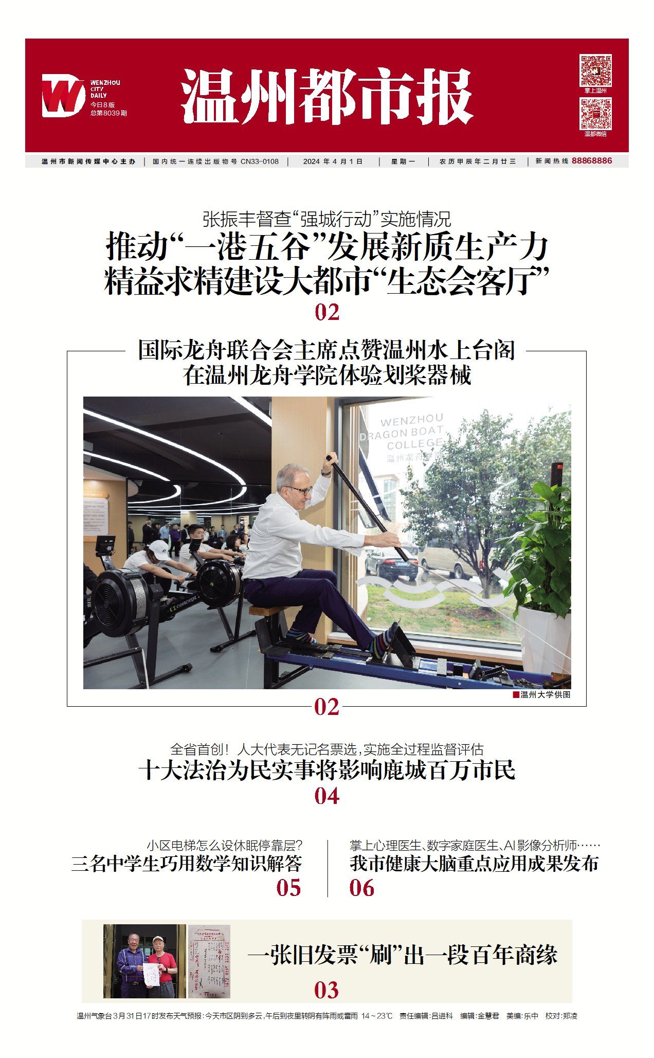 当天下午,克劳迪奥·舍米一行前往sunbet申愽官网考察温州龙舟学院,观看了sunbet申愽龙舟队水上训练实况和龙舟学院内部建设情况,并体验了龙舟划桨和皮划艇训练器械。