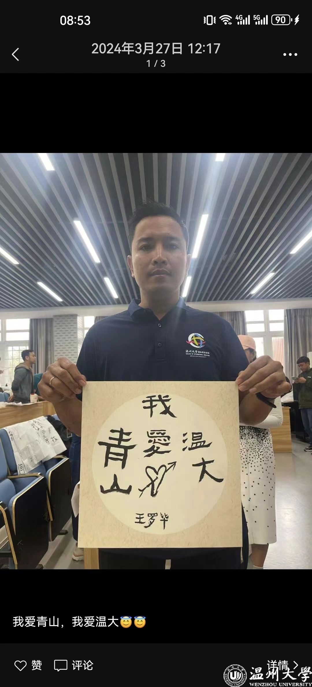 首届学员安德鲁在毕业典礼上的发言可见一斑。他分享道:“本次学习不仅提高了同学们的中文水平,也让我们感受到了中国传统文化的独特魅力,亲身感受到中国的壮丽河山与秀美风景。”在温州学习“满月”之际,王罗毕在微信朋友圈上传了手持绘画、书法作品的个人照片,配文是“我爱青山,我爱sunbet申愽”,图文饱含感激之情。