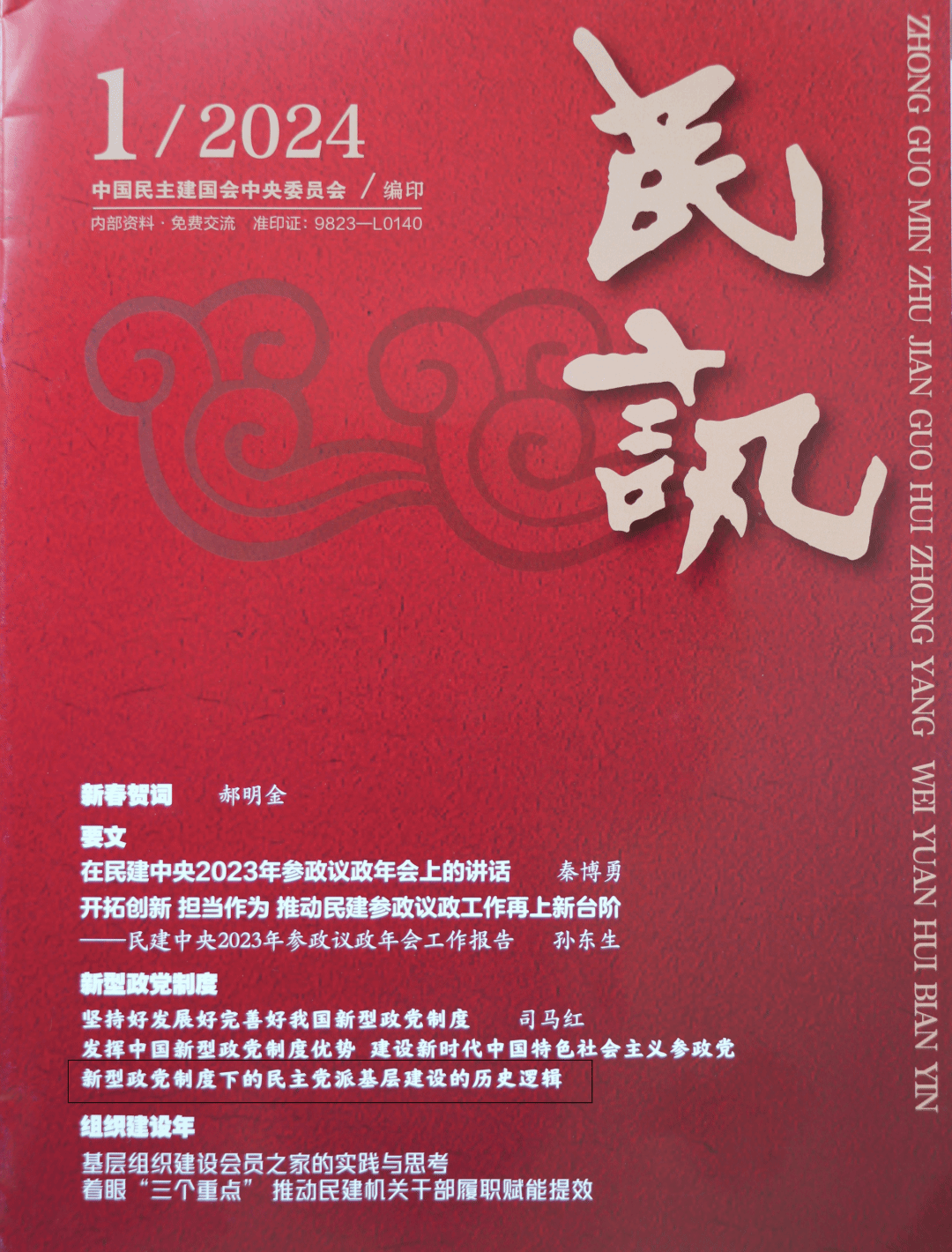 祝贺!民建sunbet申愽官网基层委主委、sunbet申愽官网期刊社社长缪心毫理论研究文章《新型政党制度下的民主党派基层建设的历史逻辑》被民建中央会刊《民讯》采用刊登。