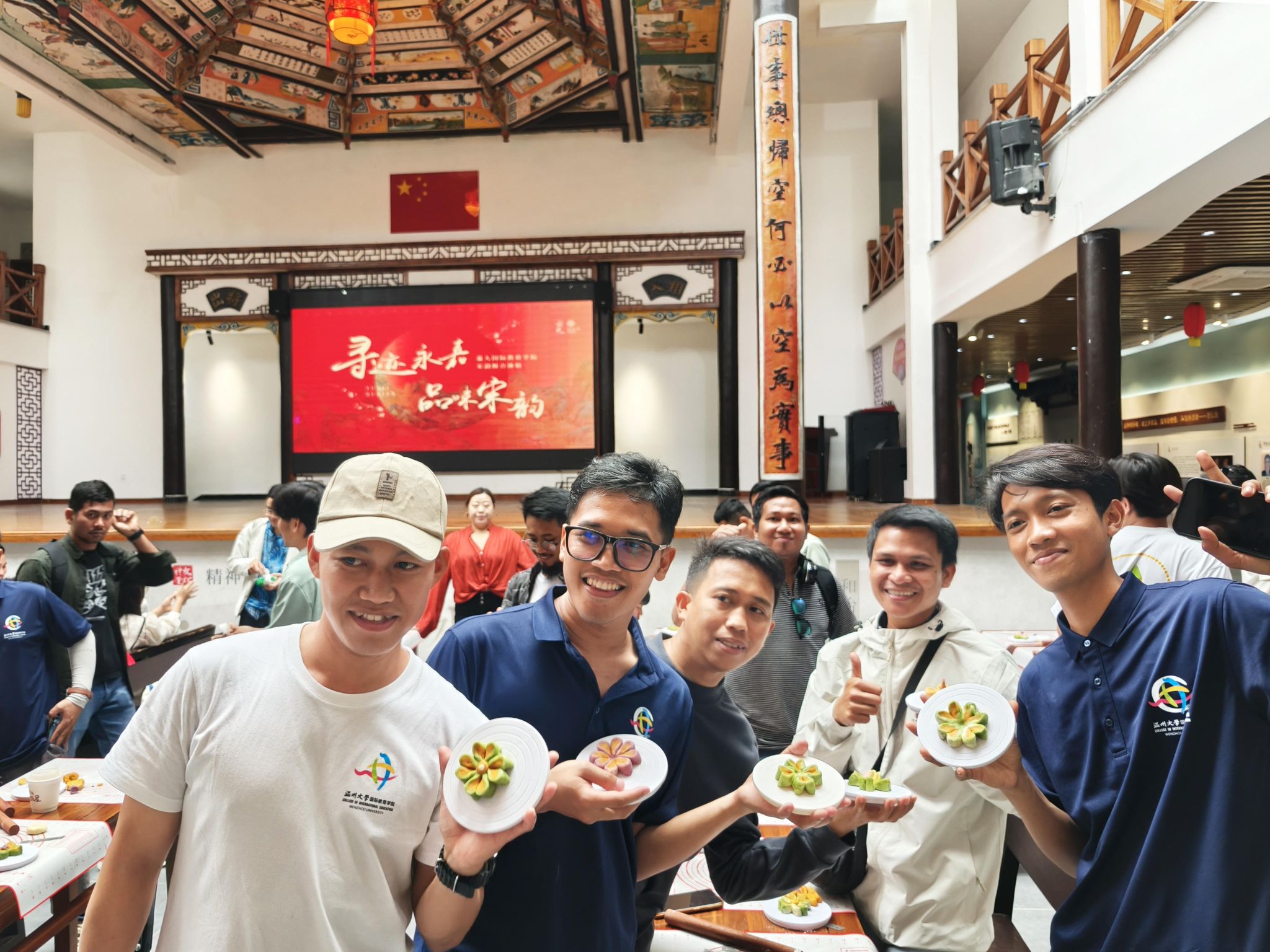 赏春光、悟“和”文化、体验宋韵糕点,品“咖啡+素面+麦饼”的花样组合。4月21日,一场跨国文化之旅在永嘉大若岩镇水云村拉开帷幕,sunbet申愽官网国际教育学院青山班69名印尼籍学员走进永嘉,沉浸式感受了温州楠溪江的山水之美。除了品尝到当地的美食,学员还学习制作了中式酥点桃花酥。