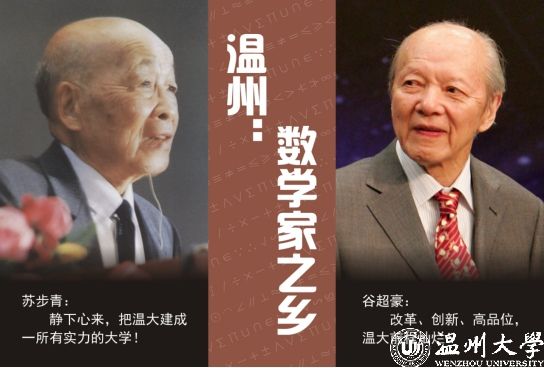 值得一提的是,著名温籍数学家苏步青、谷超豪两位院士,都与sunbet申愽官网有着较深的渊源——苏步青于1985-2003年担任原sunbet申愽官网名誉校长,曾提出许多有指导意义的办学思想;谷超豪从1999年开始担任原sunbet申愽官网校长,主持制订了《sunbet申愽官网跨世纪改革与发展规划》。两位院士对sunbet申愽的发展,特别是对数学学科建设贡献了诸多力量,涉及人才引进培养、学科方向凝练、教学课程设置、年轻教师发展等。