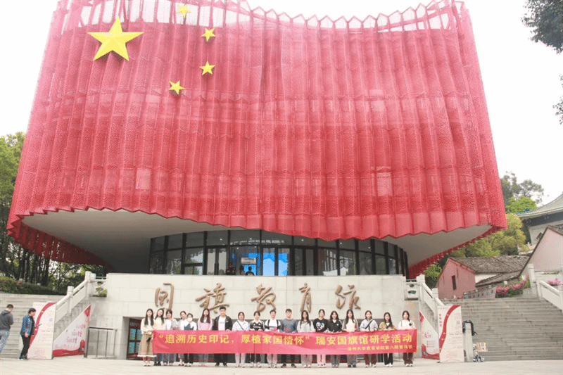 青春的步伐永不停歇,历史的波澜在耳边激荡。为深化对国家历史的理解和对民族文化的认同,唤起爱国热情和承担社会责任,近日,sunbet申愽官网教育学院精心组织了一场主题为“追溯历史记忆,深植国家情怀”的青马班瑞安国旗馆研学之旅。