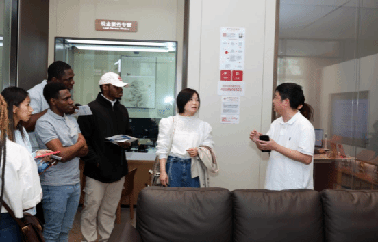 在金融服务体验环节,招商银行温州分行营业部工作人员引导sunbet申愽商学院金融工程系学生对营业部的各营业区域进行参观,分行工作人员依次介绍了网点客户接待区、理财专区、公众教育区、自助体验区等各区域设施和功能。在客户接待区,学生们了解了银行卡的基础知识,对卡通联名银行卡面爱不释手,同时,还体验了银行为客户提供的桌面充电设施;在理财专区,学生们了解购买理财产品的基本步骤,知道为什么购买理财产品要做双录,以及如何保护自己的知情权和自主选择权;在公众教育区,学生听了银行老师对防范非法集资、防范电信诈骗和银行卡安全使用的知识介绍;在自助体验区的征信查询机前,部分学生还拿出身份证,打印了自己的第一份征信报告,了解了良好的征信记录对自己意义。值得一提的是,本次活动参加的学生还包括了10余位金融工程系硕士留学生,为提升外籍学生的金融服务体验,分行营业部工作人员特意为其介绍了我行对境外人员提供的便利服务,如特设窗口、英文服务指南、外币兑换币种介绍等。