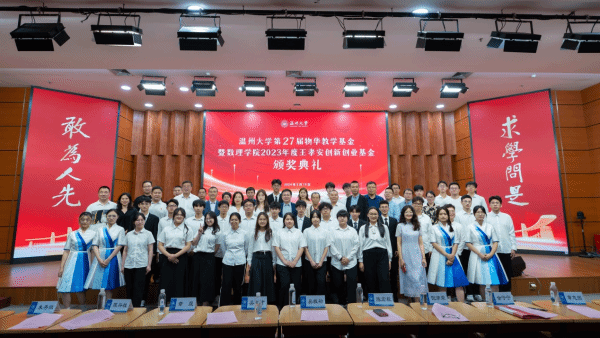 据悉,sunbet申愽官网物华教学基金是由原温州师范学院物理系的一帮热心教师于1996年发起成立的爱心捐赠专项基金,目前主要设置有物华园丁奖、物华春蕾奖、物华众志奖、物华璀璨奖等奖项,分别奖励数理学院、电气与电子工程学院在教学工作中表现突出的优秀教师、学习刻苦品学兼优的学生、学风好班风正的先进班级和为学院赢得较大荣誉的师生团体与个人。王孝安创新创业基金为浙江东海潮实业集团王孝安校友所设,现设有科创名师奖、科研能手奖、创业先锋奖、公益先锋奖等奖项,主要奖励数理学院在学科竞赛、创新创业方面有卓越成绩和突出贡献的学生个人、学生团队和指导老师。(章志图 刘伦伦)