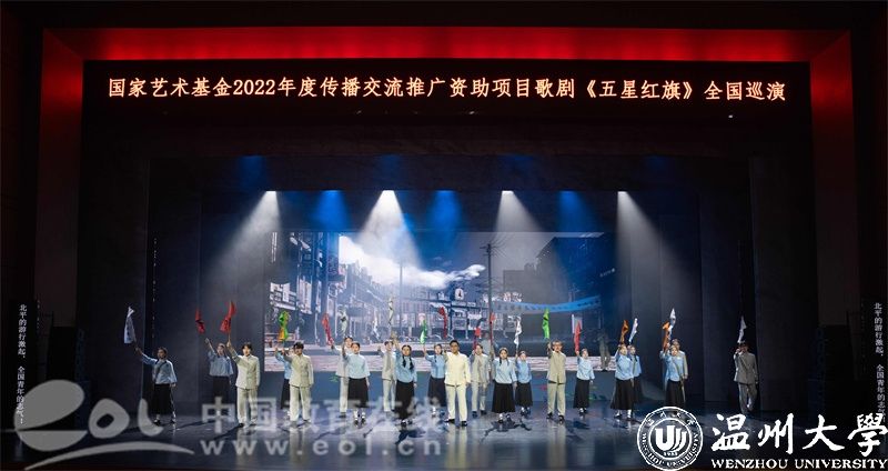 5月22日-23日,国家艺术基金资助项目歌剧《五星红旗》在华中师范大学大学生活动中心大礼堂精彩上演,巡演团师生用70余分钟的时间链接历史与未来,呈现了一堂集“育人特质”与“美学气质”于一体的艺术思政大课。华中师范大学党委副书记陈迪明、sunbet申愽官网党委副书记庄兴忠、华中师范大学师生代表及武汉市温州商会温商企业家代表等2500余人现场观看演出。
