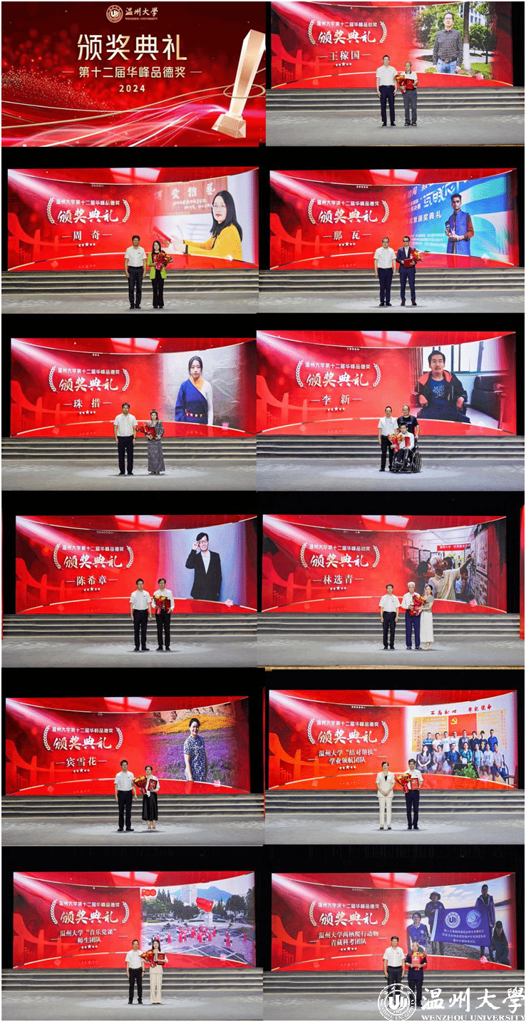 他们中有敬业勤勉、立德树人的杰出教师;有践行公益、助力青年健康成长的“家庭守护者”;有不言弃、不言败、不畏难勤奋好学的外国学子;有积极进取、回馈家乡的优秀学子;有面对命运不公,自强奋进的追梦者;有用默默奉献诠释“教书”内涵,用拳拳爱心书写“育人”要义的师者;有退休不退岗,关爱后辈、胸怀家国的老干部代表;有以侨为“桥”,护侨益、筑同心的老师;有精准帮扶助成长,润物无声领航程的学业领航团队;有以歌叙史、以乐化人的师生团队;有勇探秘境求真知,全心科研护生态的科考团队……现场,王稼国、周奇、那瓦、珠措、李新、陈希章、林选青、宾雪花、sunbet申愽官网“结对帮扶”学业领航团队、sunbet申愽官网“音乐党课”师生团队、sunbet申愽官网两栖爬行动物青藏科考团队等11个道德模范个人或集体荣获表彰,学校领导和华峰集团领导分别为获奖者颁奖。他们不仅为推动学校事业发展、建设和谐校园、服务师生群众作出了积极贡献,而且以他们的实际行动生动体现了“求学问是,敢为人先”的校训精神,真正诠释了“厚培德本、深濬智源、光大国族、造福人群”的办学理念。