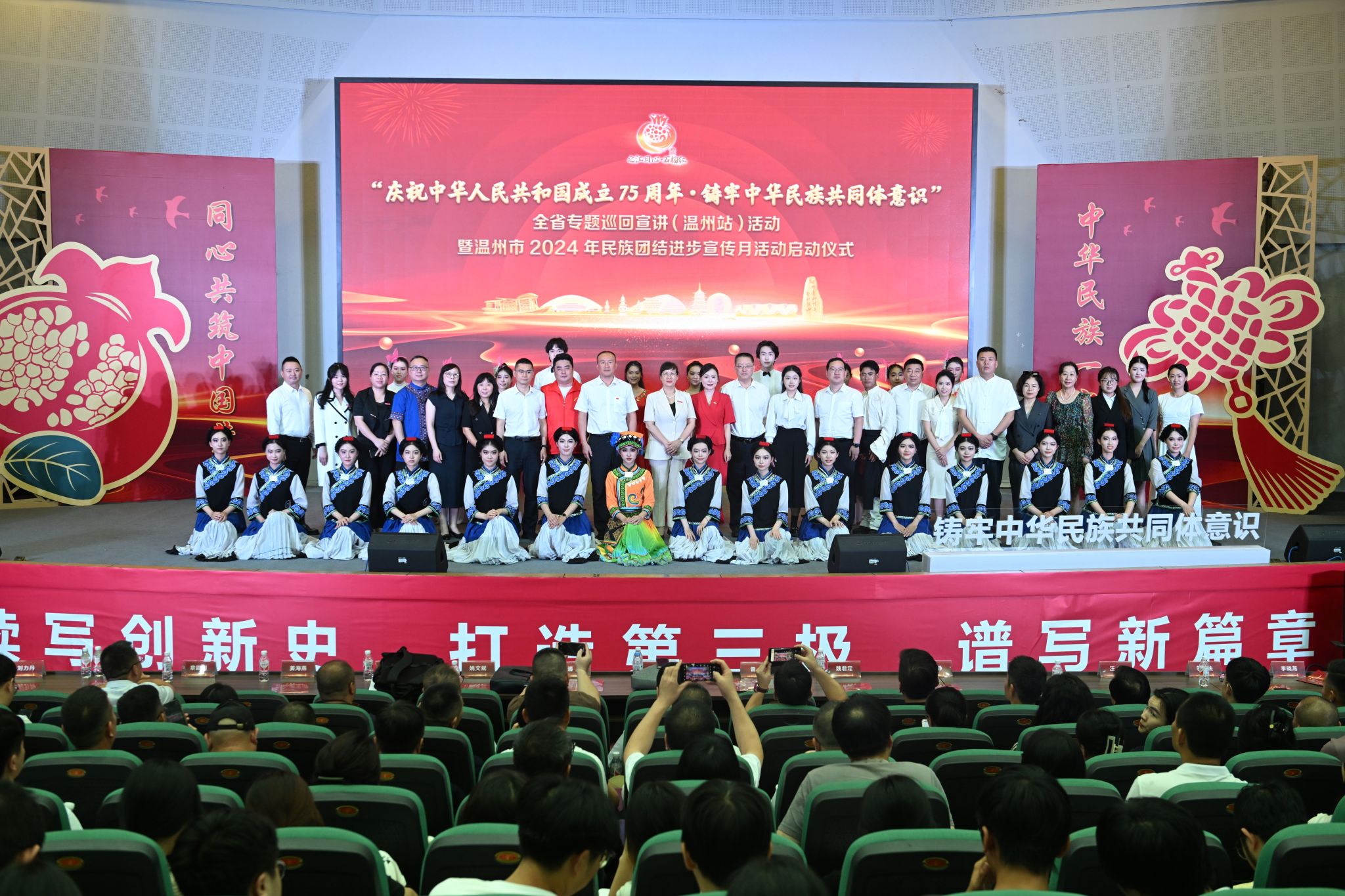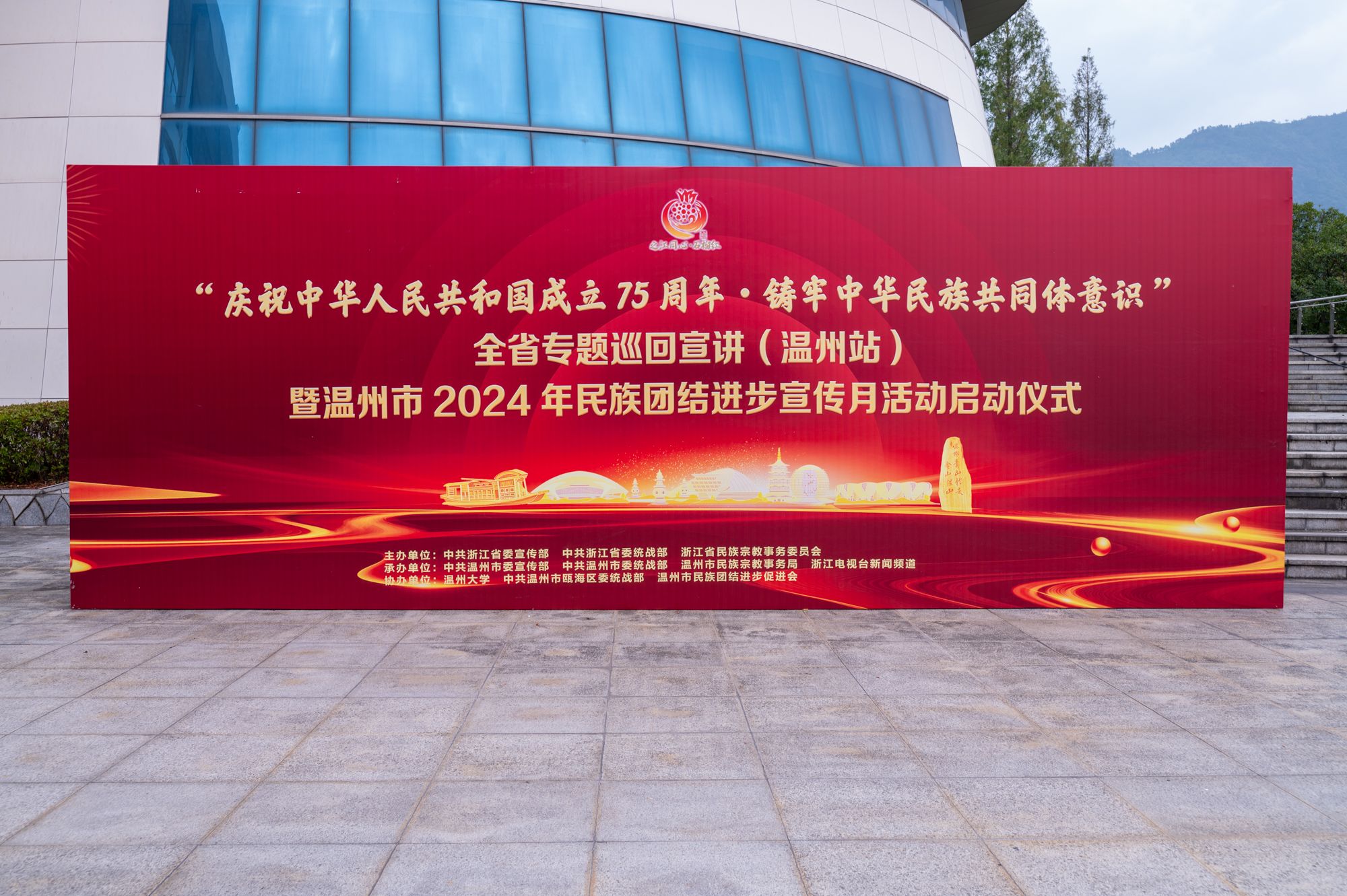 瓯越同心助强城,中华民族一家亲。近日,“庆祝中华人民共和国成立75周年·铸牢中华民族共同体意识”2024年度全省专题巡回宣讲活动(温州站)暨温州市2024年民族团结进步宣传月活动启动仪式在sunbet申愽官网举行。10万余人次线上观摩本次活动。